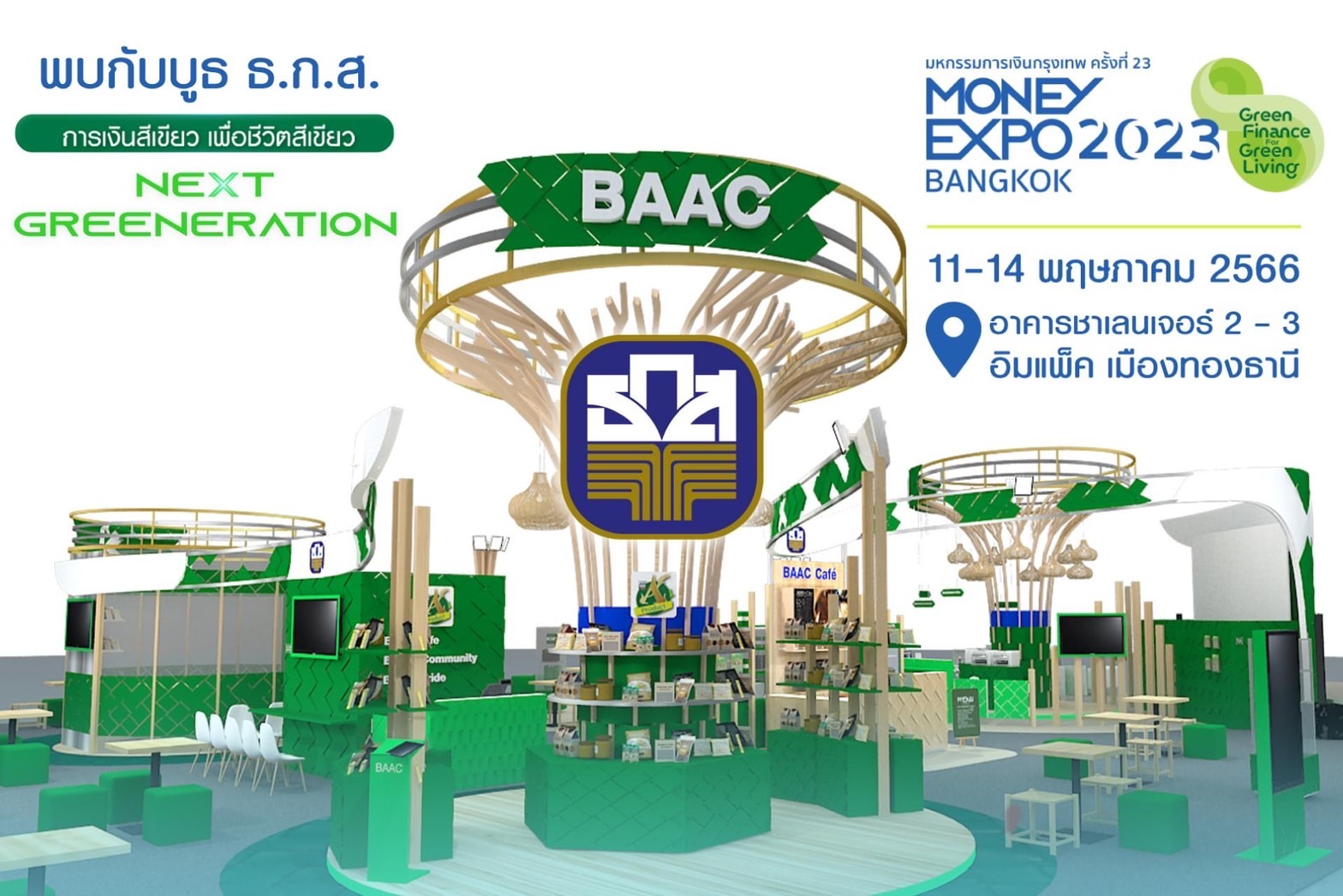 ที่สำคัญคือ กิจกรรม BAAC LIVE เสวนา Green Finance for Green Living ที่จะมีการพูดคุยในประเด็นการช่วยลดปัญหาโลกร้อนอย่างยั่งยืน ด้วยการปลูกต้นไม้ เพื่อกักเก็บคาร์บอน การสร้างมูลค่าเพิ่มให้ที่ดินและการดูแลสิ่งแวดล้อม โดยคุณปรีชา หงอกสิมมา กรรมการธนาคารต้นไม้บ้านท่าลี่ คุณเพยาว์ แสงประไพ ประธานธนาคารต้นไม้บ้านบางเสด็จ และคุณผลึก อาจหาญ ผู้อำนวยการฝ่ายพัฒนาลูกค้าและชุมชน ธ.ก.ส. กิจกรรม A-Product LIVE จำหน่ายผลิตภัณฑ์คุณภาพจากเกษตรกรลูกค้าในราคาพิเศษ อาทิ ผลิตภัณฑ์ Green Fruity set : 4 นางพญา Greenlicious set : ทานอร่อย และ Green Healthy set : อายุวัฒนะ ผ่าน Facebook page : ธกส บริการด้วยใจ และ Youtube : BAAC Thailand และมินิคอนเสิร์ตจาก วงนิวคันทรี่ (New Country) โดยร่วมสนุกกันได้ที่ บูธ ธ.ก.ส. ในวันที่ 13 พฤษภาคม 2565 เวลา 16.40 – 17.20 น. และคุณ Kethy and George ในวันที่ 14 พฤษภาคม 2566 เวลา 13.20 – 14.00 น. อย่าพลาด! พบกับกิจกรรมดี ๆ และสิทธิประโยชน์มากมาย ที่บูธ ธ.ก.ส. ในงาน Money Expo 2023 วันที่ 11 – 14 พฤษภาคมนี้