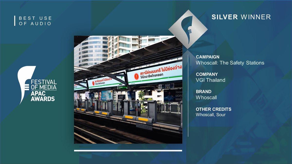 บริษัท วีจีไอ จำกัด (มหาชน) หรือ วีจีไอ (“VGI”) ผู้นำการตลาด Offline-to-Online (“O2O”) โซลูชั่นส์ ผ่านแพลตฟอร์มที่หลากหลาย ตอกย้ำวิสัยทัศน์ผู้นำโซลูชั่นส์แห่งอนาคต จับมือเอเจนซี่โฆษณา SOUR Bangkok พาโฆษณาไทย “Whoscall: The Safety Stations” คว้ารางวัลสุดยอดผลงานครีเอทีฟสาขา “Best Use of Audio การใช้เสียงในสื่อโฆษณาอย่างสร้างสรรค์” ในระดับ Silver