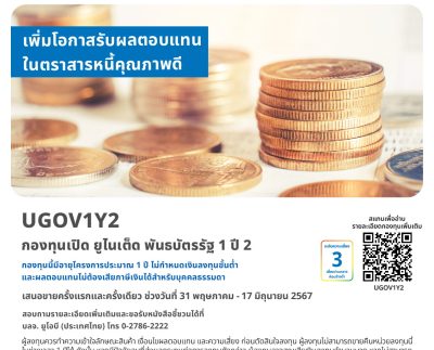บลจ.ยูโอบี เปิดเสนอขายกองทุน UGOV1Y2 เน้นลงทุนในพันธบัตรภาครัฐ IPO 31 พฤษภาคม – 17 มิถุนายน 2567