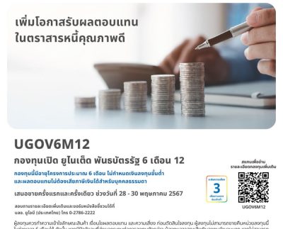บลจ.ยูโอบี เปิดเสนอขายกองทุน UGOV6M12 เน้นลงทุนในพันธบัตรภาครัฐ IPO 28-30 พฤษภาคม 2567