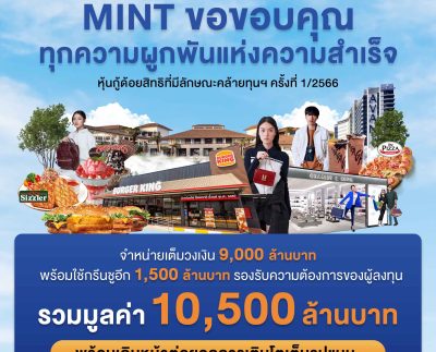 ทะลุเป้า! MINT ขอบคุณทุกความผูกพันแห่งความสำเร็จ หลังนักลงทุนเชื่อมั่นจองหุ้นกู้ด้อยสิทธิฯ ครั้งที่ 1/2566 ปิดดีลกวาดยอดขาย 10,500 ล้านบาท