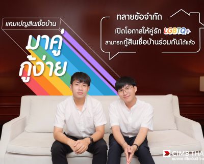 แคมเปญสินเชื่อบ้าน “มาคู่ กู้ง่าย” ธนาคาร ซีไอเอ็มบี ไทย ทลายข้อจำกัดเดิม เปิดโอกาสให้คู่รัก LGBTQ+ สามารถกู้สินเชื่อบ้านร่วมกันได้แล้ว