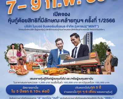 นับถอยหลัง! MINT เตรียมเสนอขายหุ้นกู้ด้อยสิทธิฯ ครั้งที่ 1/2566 (MINT23PA) ชูอัตราดอกเบี้ย 5 ปีแรก 6.10% ต่อปี เปิดจองซื้อ7-9 ก.พ. 66 นี้