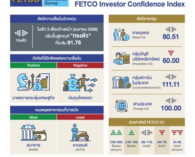 “ดัชนีความเชื่อมั่นนักลงทุนปรับขึ้นสู่เกณฑ์ ‘ทรงตัว’ นักลงทุนคาดหวังปัจจัยหนุนจากมาตรการกระตุ้นเศรษฐกิจและผลประกอบการบจ. ปัจจัยฉุดคือเงินทุนไหลออกและเศรษฐกิจไทยถดถอย”