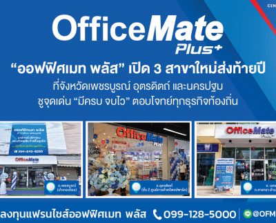ออฟฟิศเมท พลัส” เปิด 3 สาขาใหม่ส่งท้ายปี ที่จังหวัดเพชรบูรณ์ อุตรดิตถ์ และนครปฐม ชูจุดเด่น “มีครบ จบไว” ตอบโจทย์ทุกธุรกิจท้องถิ่น
