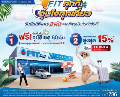ทิพยประกันภัย จับมือ FIT Auto ร่วมจัดแคมเปญรับเทศกาลท่องเที่ยว “FIT ทุกที่ อุ่นใจทุกเที่ยว”