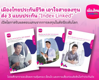 เมืองไทยประกันชีวิต เอาใจสายลงทุน ส่ง 3 แบบประกัน “Index Linked” เปิดโอกาสรับผลตอบแทนจากการลงทุนในดัชนีระดับโลก พร้อมอุ่นใจด้วยความคุ้มครองชีวิต เบี้ยประกันไม่หาย การันตีเงินคืน