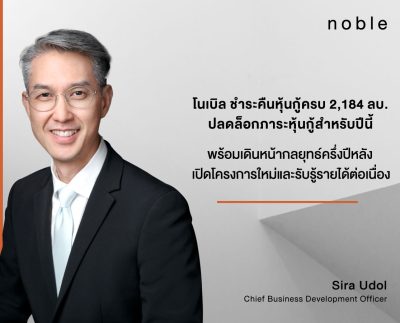 NOBLE ชำระคืนหุ้นกู้ครบ 2,184 ลบ. ปลดล็อกภาระหุ้นกู้สำหรับปีนี้ พร้อมเดินหน้ากลยุทธ์ครึ่งปีหลัง เปิดโครงการใหม่และรับรู้รายได้ต่อเนื่อง