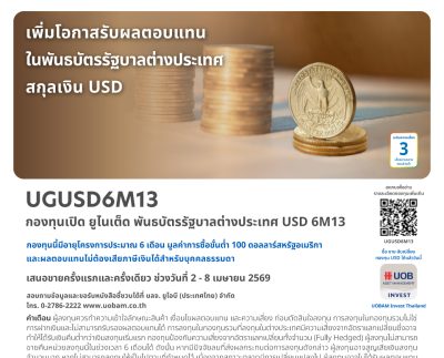 บลจ.ยูโอบี นำเสนอโอกาสการลงทุนในพันธบัตรภาครัฐบาลต่างประเทศสกุลเงินดอลลาร์สหรัฐ กองทุนเปิด ยูไนเต็ด พันธบัตรรัฐบาลต่างประเทศ USD 6M13 (UGUSD6M13) IPO 2-8 เมษายน 2569