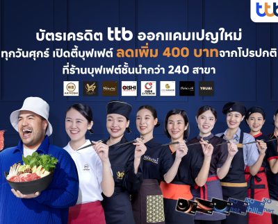 บัตรเครดิต ทีทีบี เอาใจสายกินตลอดปี 66 ประเดิมแคมเปญ “ศุกร์เปิดตี้บุฟเฟ่ต์” จับมือพันธมิตรร้านอาหารชั้นนำ มอบส่วนลดเพิ่มทันที 400 บาท จากโปรปกติ
