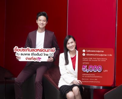 ซีไอเอ็มบี ไทย ส่งประกันประชีวิตลดหย่อนภาษี สมัครง่าย ไม่ต้องตรวจสุขภาพ เพียงตอบคำถามสุขภาพ 3 ข้อ ซื้อสะดวกผ่านแอป CIMB Thai Digital Banking พร้อมรับ GIFT Voucher จาก Central สูงสุด 5,000 บาท ตั้งแต่ 8 พ.ย.-30 ธ.ค. 2565