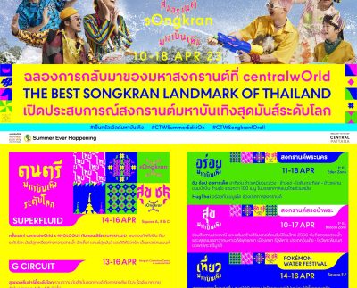 เตรียมนับถอยหลังสู่บรรยากาศความมันส์ของเทศกาลสงกรานต์ Water festival ที่ทุกคนรอคอย ที่ศูนย์การค้าเซ็นทรัล แลนด์มาร์กสงกรานต์ของคนไทยทั่วประเทศ