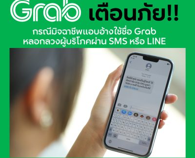 แกร็บ เตือนภัย! กรณีมิจฉาชีพแอบอ้างใช้ชื่อ Grab ทำกิจกรรมการตลาดเพื่อหลอกลวงผู้บริโภคผ่าน SMS หรือ LINE