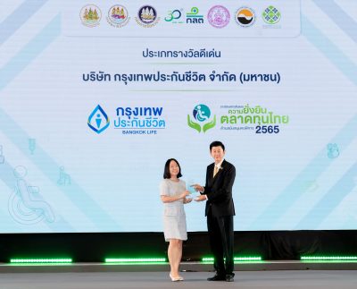 กรุงเทพประกันชีวิต รับรางวัลดีเด่น “องค์กรต้นแบบ ความยั่งยืนในตลาดทุนไทยด้านสนับสนุนคนพิการ” ประจำปี 2565 จากสำนักงานคณะกรรมการกำกับหลักทรัพย์และตลาดหลักทรัพย์