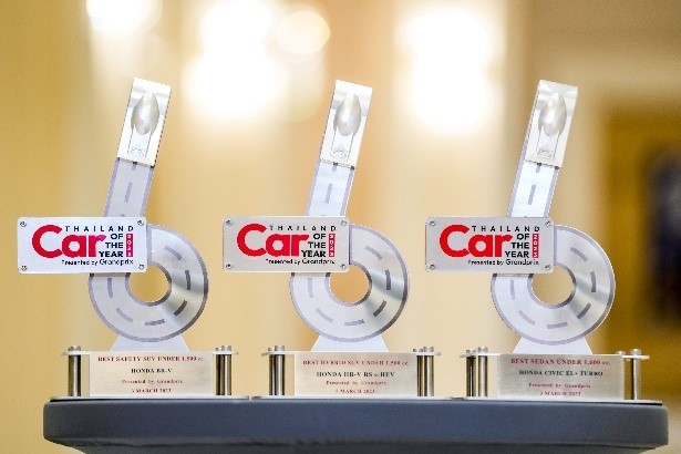บริษัท ฮอนด้า ออโตโมบิล (ประเทศไทย) จำกัด คว้า 3 รางวัลรถยนต์ยอดเยี่ยมแห่งปี 2566 (Car of the Year 2023) ซึ่งจัดโดยบริษัท กรังด์ปรีซ์ อินเตอร์เนชั่นแนล จำกัด (มหาชน) โดยฮอนด้า เอชอาร์-วี อี:เอชอีวี รุ่น e:HEV RS รับรางวัลรถยนต์ยอดเยี่ยมประเภทไฮบริดเอสยูวี เครื่องยนต์ไม่เกิน 1,500 ซีซี เป็นปีที่สองติดต่อกัน ตอกย้ำความเป็นผู้นำในกลุ่มยนตรกรรมเอสยูวี พร้อมด้วย 2 ยนตรกรรมรุ่นยอดนิยม ฮอนด้า ซีวิค รุ่น EL+ คว้ารางวัลรถยนต์ยอดเยี่ยมประเภทซีดาน เครื่องยนต์ไม่เกิน 1,600 ซีซี และฮอนด้า บีอาร์-วี ใหม่ คว้ารางวัลรถยนต์ยอดเยี่ยมประเภทเอสยูวีด้านระบบรักษาความปลอดภัย เครื่องยนต์ไม่เกิน 1,500 ซีซี สะท้อนถึงความไว้วางใจและการตอบรับที่ดีของลูกค้าชาวไทยเสมอมา