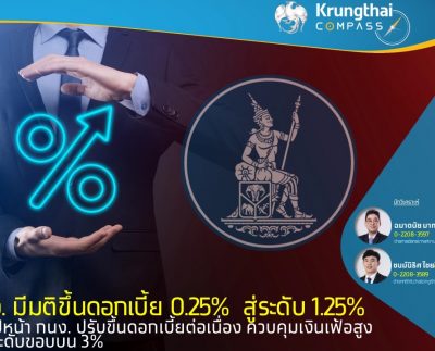 กนง. มีมติเป็นเอกฉันท์ปรับขึ้นอัตราดอกเบี้ยนโยบายที่ร้อยละ 0.25 ต่อปี จากร้อยละ 1.00 ต่อปี เป็นร้อยละ 1.25 ต่อปี