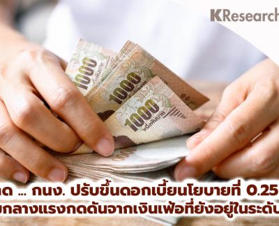 การประชุมกนง.วันที่ 30 พ.ย. 65 คาดกนง. ทยอยปรับขึ้นดอกเบี้ยนโยบายอีกร้อยละ 0.25 มาอยู่ที่ระดับ 1.25% ท่ามกลางแรงกดดันด้านเงินเฟ้อที่ยังอยู่ในระดับสูง ขณะที่เศรษฐกิจเริ่มอยู่ในเส้นทางการฟื้นตัว