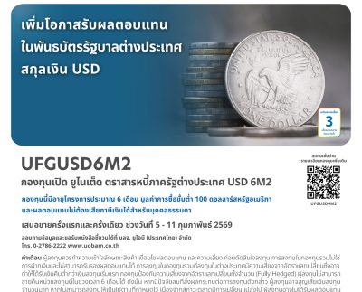 บลจ.ยูโอบี นำเสนอโอกาสการลงทุนในพันธบัตรภาครัฐบาลต่างประเทศสกุลเงินดอลลาร์สหรัฐ กองทุนเปิด ยูไนเต็ด ตราสารหนี้ภาครัฐต่างประเทศ USD 6M2 (UFGUSD6M2) IPO 5-11 กุมภาพันธ์ 2569