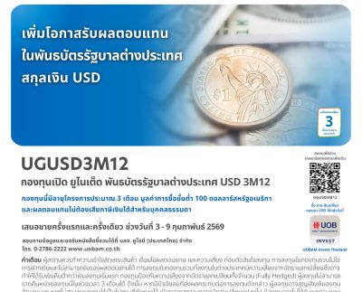 บลจ.ยูโอบี นำเสนอโอกาสการลงทุนในพันธบัตรภาครัฐบาลต่างประเทศสกุลเงินดอลลาร์สหรัฐ กองทุนเปิด ยูไนเต็ด พันธบัตรรัฐบาลต่างประเทศ USD 3M12 (UGUSD3M12) IPO 3 – 9 กุมภาพันธ์ 2569