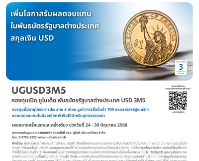 บลจ.ยูโอบี นำเสนอโอกาสการลงทุนในพันธบัตรภาครัฐบาลต่างประเทศสกุลเงินดอลลาร์สหรัฐ กองทุนเปิด ยูไนเต็ด พันธบัตรรัฐบาลต่างประเทศ USD 3M5 (UGUSD3M5) IPO 24-30 มิถุนายน 2568