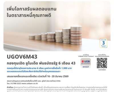 บลจ.ยูโอบี  นำเสนอโอกาสลงทุนในพันธบัตรภาครัฐ กองทุนเปิด ยูไนเต็ด พันธบัตรรัฐ 6 เดือน 43 (UGOV6M43) IPO 16 – 20 มีนาคม 2569