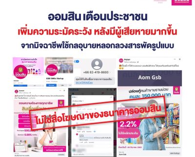 ออมสิน เตือนประชาชนเพิ่มความระมัดระวังหลังมีผู้เสียหายมากขึ้นจากมิจฉาชีพใช้กลอุบายหลอกลวงสารพัดรูปแบบ