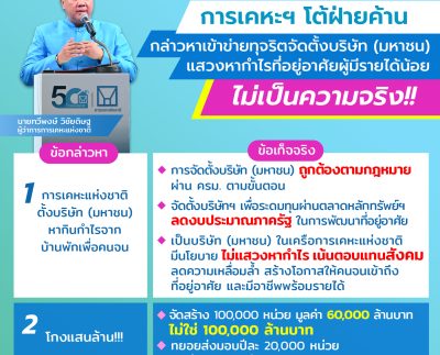 การเคหะฯ โต้ฝ่ายค้านกล่าวหาเข้าข่ายทุจริตจัดตั้งบริษัท (มหาชน) แสวงหากำไรที่อยู่อาศัยผู้มีรายได้น้อย ไม่เป็นความจริง!