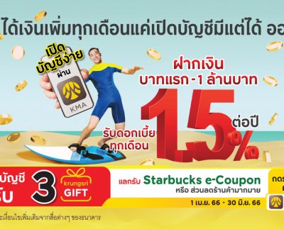 กรุงศรี ให้คุณได้เงินเพิ่มทุกเดือน แค่เปิดบัญชีมีแต่ได้ ออนไลน์