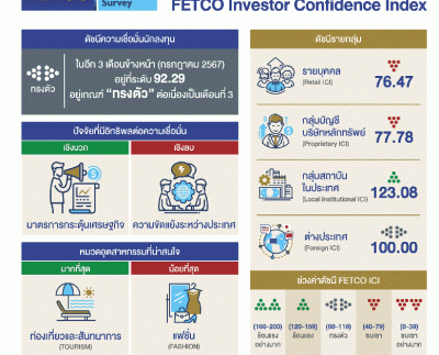 “ดัชนีความเชื่อมั่นนักลงทุนอยู่ในเกณฑ์ ‘ทรงตัว’ ต่อเนื่องเป็นเดือนที่ 3 นักลงทุนคาดหวังปัจจัยหนุนจากมาตรการกระตุ้นเศรษฐกิจ และเศรษฐกิจไทยพื้นตัว ปัจจัยฉุดคือความขัดแย้งระหว่างประเทศ และเงินเฟ้อ”