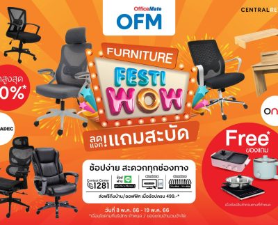 ออฟฟิศเมท จัดแคมเปญ “Furniture FestiWow” เทศกาลช้อปเฟอร์นิเจอร์สุดว้าว ทั้งลดทั้งแถม พร้อมส่งและประกอบฟรี* ช้อปเลย! 8 พ.ค. 66 – 19 พ.ค. 66