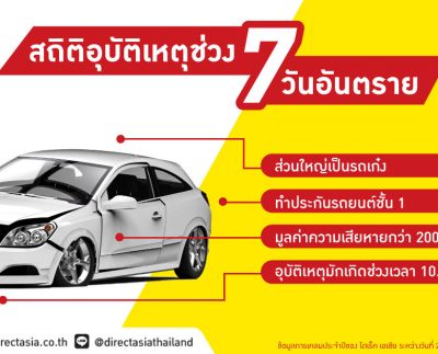 ไดเร็ค เอเชีย รายงานยอดเคลมอุบัติเหตุช่วง 7 วันอันตรายสูงขึ้นต่อเนื่องทุกปี เผยช่วงปีใหม่ 65 ตัวเลขสูงถึง 12,522 ราย เตรียมพร้อมให้บริการฉุกเฉิน 24 ชั่วโมง สร้างความมั่นใจคนใช้ถนน