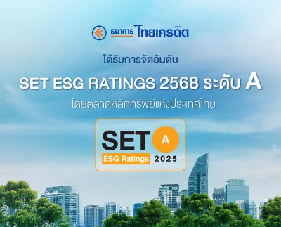 ธนาคารไทยเครดิต คว้า SET ESG Ratings ประจำปี 2568 ระดับ “A” ตอกย้ำถึงการเป็น “ธนาคารเพื่อความยั่งยืน”