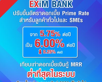 EXIM BANK ประกาศปรับขึ้นอัตราดอกเบี้ยเงินกู้ คงจุดยืน “กล้า พัฒนาเพื่อคนไทย” ด้วยอัตราดอกเบี้ยต่ำสุดในระบบ