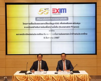 ตลาดหลักทรัพย์ฯ จับมือ EXIM BANK แลกเปลี่ยนข้อมูล ESG ส่งเสริมสินเชื่อเพื่อการพัฒนาที่ยั่งยืน