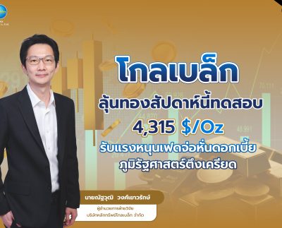 “โกลเบล็ก” ลุ้นทองสัปดาห์นี้ทดสอบ 4,315 $/Oz รับแรงหนุนเฟดจ่อหั่นดอกเบี้ย–ภูมิรัฐศาสตร์ตึงเครียด