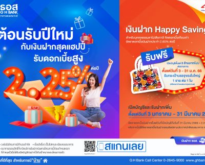 ธอส. ร่วมต้อนรับปีใหม่ 2566 เปิดตัวเงินฝากออมทรัพย์ Happy Savings อัตราดอกเบี้ยสูงสุด 2.25% ต่อปี