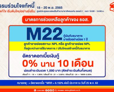 ธอส. นำมาตรการ 22 [M22] ช่วยเหลือลูกค้ารายย่อยสถานะ NPL ร่วมงานมหกรรมร่วมใจแก้หนี้ฯ ครั้งที่ 2 จ.ขอนแก่น