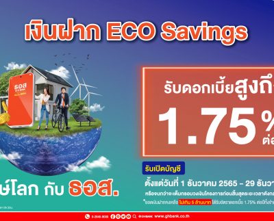 ธอส. เปิดตัวเงินฝาก ECO Savings ดอกเบี้ยสูง 1.75% ต่อปี