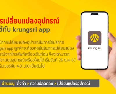 กรุงศรี ยกระดับมาตรฐานความปลอดภัย เสริมฟังก์ชันยืนยันการเปลี่ยนแปลงอุปกรณ์สำหรับใช้งาน ‘krungsri app