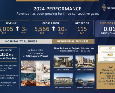 สิงห์ เอสเตท รายงานรายได้ปี 2567 เติบโตต่อเนื่องสามปีซ้อน เตรียมจ่ายเงินปันผล 0.01 บาท/หุ้น พร้อมโชว์รายได้จากโรงแรมสูงสุดเป็นประวัติการณ์
