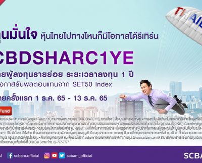 บลจ.ไทยพาณิชย์ ย้ำความสำเร็จ เสนอขายกองทุน SCBDSHARC1YE ต่อเนื่อง ช่วยลดเสี่ยงการขาดทุนเงินต้นพร้อมเติบโตไปกับแนวโน้มตลาดหุ้นไทยปี 66 เริ่มวันที่ 1 – 13 ธ.ค.นี้