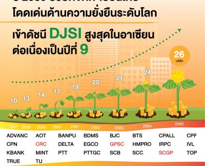 บจ. ไทยครองแชมป์เข้าดัชนี DJSI สูงสุดในอาเซียนต่อเนื่องเป็นปีที่ 9