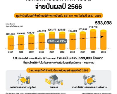 เปิดสถิติการจ่ายปันผลของบริษัทจดทะเบียนในตลาดหุ้นไทย ปี 2566